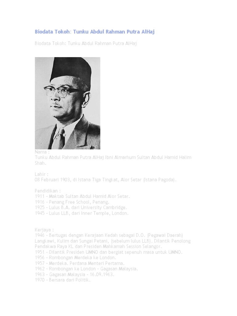 Related : Perdana Menteri Pertama Malaysia : 08 februari 1903, tempat lahir :.